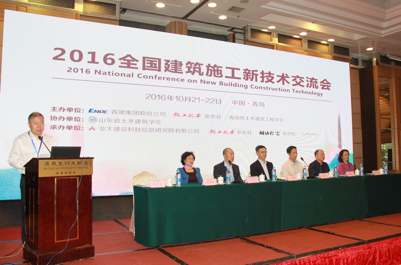 From October 20 to 22, 2016 National Conference on New Building Construction Technology was held in the international conference center of Qingdao Huiquan Dynasty Hotel, the second time that the conference was held in Qingdao ten years later. The conference was hosted by Qingjian Group Co., Ltd., periodical office of “Construction Technology”, and Qingdao Civil Construction Engineering Society. Leaders and experts, including Ding Hongbin, the chairman of Qingjian Group Co., Ltd. and the standing chairman of Qingdao Civil Construction Engineering Society, Wang Xuedong, the general manager of Asia-Pacific Construction Technology Information Institute Co., Ltd., Zhang Tongbo, vice president of Qingjian Group Co., Ltd., Zhang Kewen, the director of periodical office of “Construction Technology”, and Chen Ximin, the secretary general of Qingdao Civil Construction Engineering Society, attended the conference and sat on the rostrum. Nearly 350 representatives from areas such as scientific research, design and construction, including more than 120 engineers and technicians from Qingjian, participated in the conference.