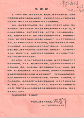 市兒童福利院向集團(tuán)股份公司發(fā)來感謝信