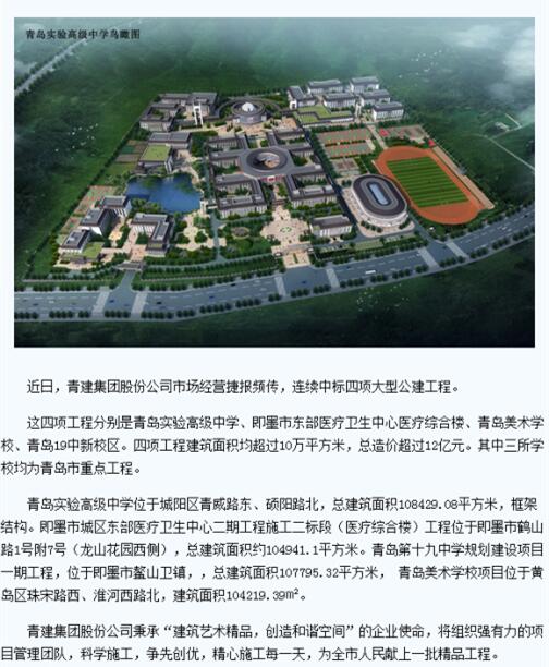 青島新聞網(wǎng):青建中標(biāo)四項(xiàng)大型公建工程 19中美術(shù)學(xué)校均在列