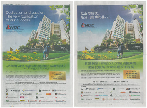 青建國際(南洋)集團發(fā)展有限公司獲新加坡建屋局2012年建筑獎
