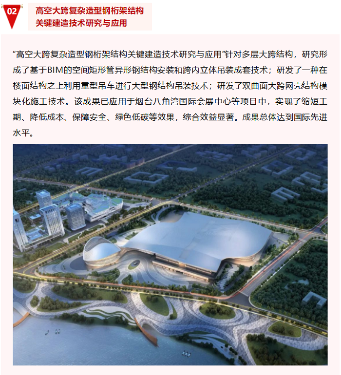 與會(huì)院士、專家認(rèn)真聽取了課題組成員對(duì)科技成果項(xiàng)目背景、創(chuàng)新點(diǎn)及技術(shù)內(nèi)容、知識(shí)產(chǎn)權(quán)情況、經(jīng)濟(jì)社會(huì)效益及應(yīng)用前景等四個(gè)方面的匯報(bào),仔細(xì)審閱了評(píng)價(jià)資料,并就相關(guān)細(xì)節(jié)和應(yīng)用情況進(jìn)行了評(píng)估和問詢。專家組經(jīng)綜合評(píng)價(jià),一致認(rèn)為:“高大空間機(jī)電安裝智能建造關(guān)鍵技術(shù)研究”成果總體達(dá)到國際先進(jìn)水平,其中“管道綜合支架數(shù)據(jù)庫技術(shù)”達(dá)到國際領(lǐng)先水平;“高空大跨復(fù)雜造型鋼桁架結(jié)構(gòu)關(guān)鍵建造技術(shù)研究與應(yīng)用”、“超大云浪造型金屬屋面體系關(guān)鍵技術(shù)研究與應(yīng)用”、“腐蝕驅(qū)動(dòng)智能纖維的研發(fā)及修復(fù)裂縫機(jī)理研究”3項(xiàng)科技成果總體達(dá)到國際先進(jìn)水平,為集團(tuán)科技品牌打造和創(chuàng)新發(fā)展再添新動(dòng)力。