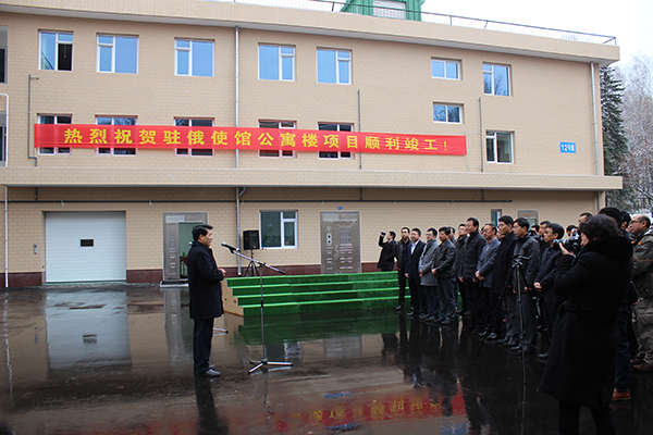24日上午,中國駐俄羅斯大使館新建公寓樓項目舉行了竣工儀式。中國駐俄大使館大使李輝,參贊張若巖、李建華,主任游一澤,外交部驗收工作組,業(yè)主單位、設(shè)計單位、監(jiān)理單位代表及項目部全體員工參加了竣工儀式。青建國際集團黨委書記王振華出席竣工儀式,李輝和王振輝分別致辭。