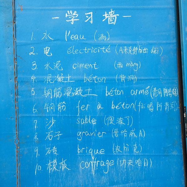 項(xiàng)目部設(shè)立了學(xué)習(xí)墻,將日常法語詞匯和用語寫在墻上,供大家學(xué)習(xí),定期更換學(xué)習(xí)內(nèi)容,為員工在當(dāng)?shù)氐墓ぷ骱蜕钐峁┹^大幫助。