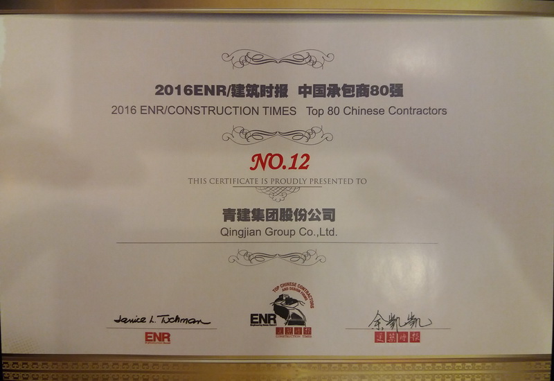 11月25日,2016年ENR/建筑時報“中國承包商80強和工程設計企業(yè)60強”頒獎典禮在福建省福州市舉行。青建集團股份公司連續(xù)13年入選“中國承包商80強”,2016年位列第12位,較上年提升9個位次。