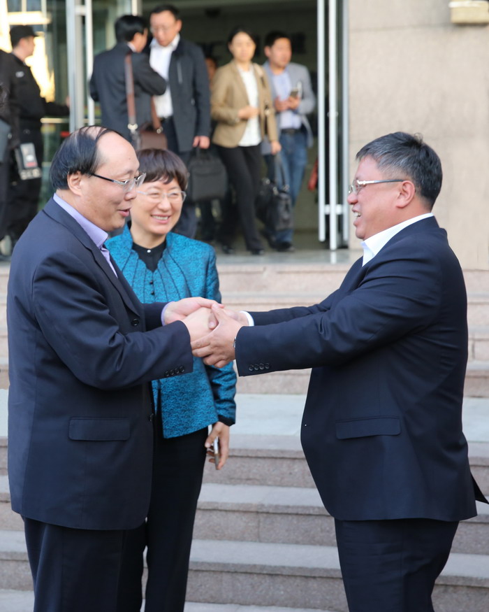 全國工商聯(lián)副主席王永慶,山東省副省長王隨蓮與青建集團(tuán)董事長王賢茂親切交談