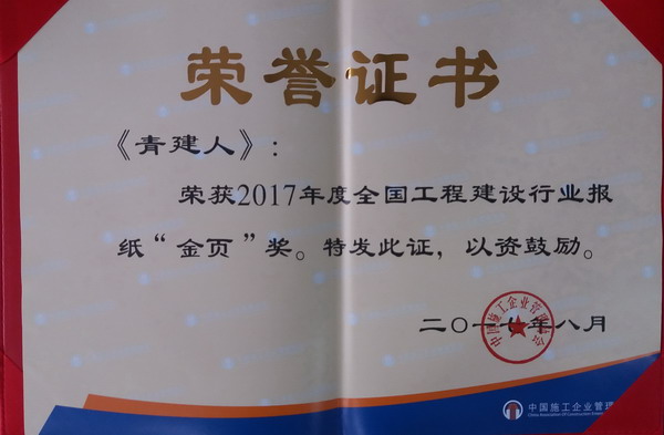 會(huì)議表彰了2017年度工程建設(shè)行業(yè)優(yōu)秀通訊員、聯(lián)絡(luò)員,并現(xiàn)場(chǎng)評(píng)選出工程建設(shè)行業(yè)報(bào)紙和期刊類“金頁獎(jiǎng)”和“銀頁獎(jiǎng)”。集團(tuán)企業(yè)報(bào)《青建人》參加報(bào)紙類評(píng)選,并再次獲評(píng)“金頁獎(jiǎng)”,企業(yè)報(bào)主編趙安朵獲評(píng)全國(guó)工程建設(shè)行業(yè)優(yōu)秀通訊員?!肚嘟ㄈ恕芬堰B續(xù)七年獲得“金頁獎(jiǎng)”稱號(hào),獎(jiǎng)項(xiàng)的獲得是對(duì)《青建人》辦報(bào)理念和集團(tuán)文化宣傳建設(shè)工作的肯定,也是對(duì)《青建人》編委會(huì)、編輯部及各級(jí)通訊員工作的褒獎(jiǎng)?!肚嘟ㄈ恕穼⒗^續(xù)踐行“揚(yáng)誠(chéng)信文化,寫做強(qiáng)之意;解管理之道,發(fā)和諧之聲;抒豪邁之情,展職工風(fēng)采;錄發(fā)展之史,樹百年品牌”的辦報(bào)宗旨,發(fā)揮集團(tuán)內(nèi)部宣傳和文化引導(dǎo)的紐帶作用。