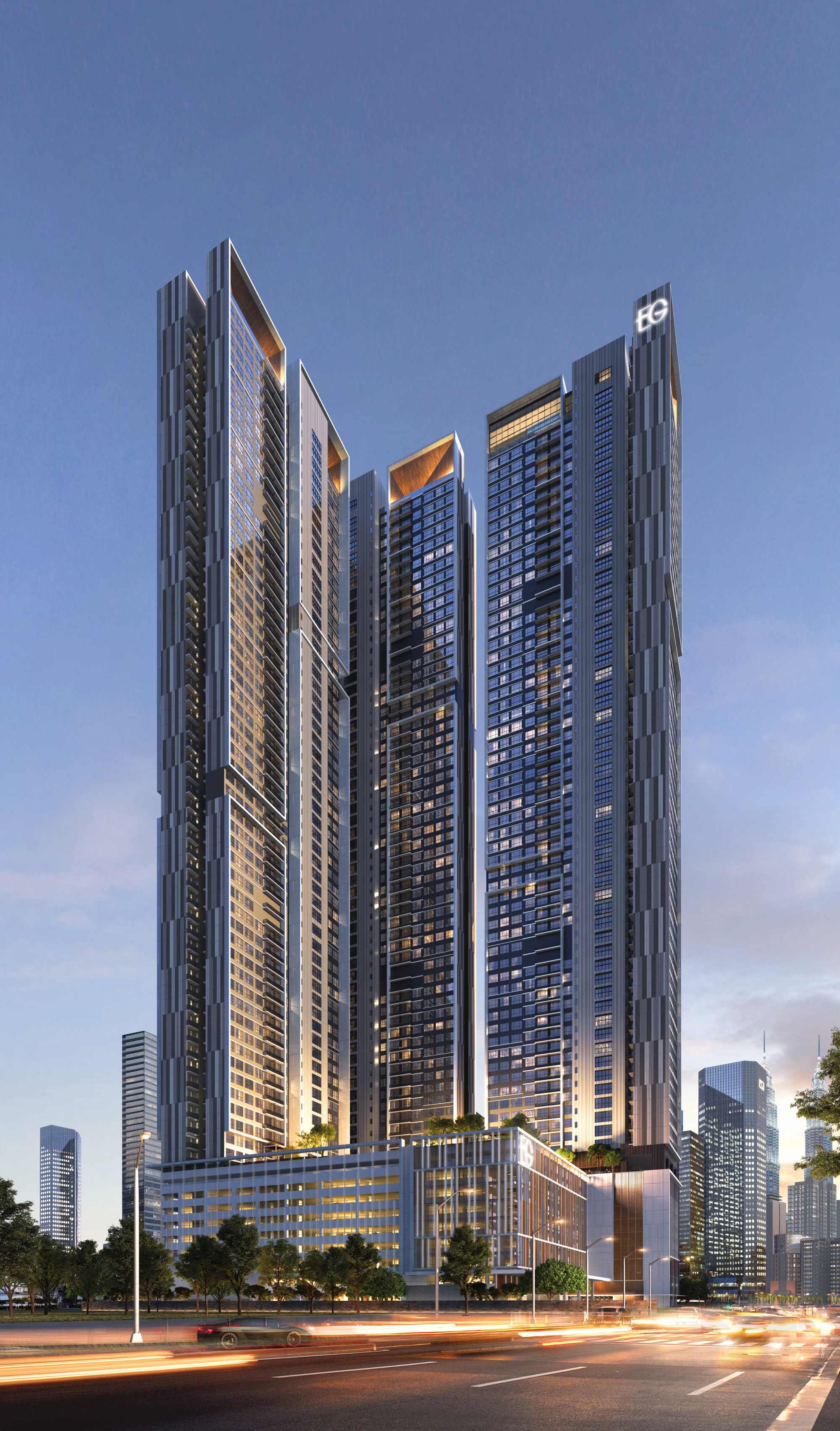 大使花園超高層項(xiàng)目坐落于吉隆坡CBD使館區(qū),地理位置優(yōu)越,距離雙子塔僅1公里。該項(xiàng)目建筑面積16.6萬(wàn)平方米,包括3棟塔樓(2棟64層,建筑高度232.65米;1棟63層,建筑高度220米)和9層車庫(kù)裙樓及屋頂花園,項(xiàng)目定位為高檔公寓。