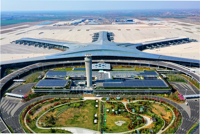 青島新機(jī)場(chǎng)航站樓及綜合交通中心工程是國(guó)家重點(diǎn)規(guī)劃項(xiàng)目,面向日韓地區(qū)門戶機(jī)場(chǎng)、東北亞地區(qū)重要的綜合樞紐,設(shè)計(jì)運(yùn)行等級(jí)為國(guó)內(nèi)民航最高級(jí)4F標(biāo)準(zhǔn),工程于2015年11月26日開工,2020年6月22日竣工。航站樓海星狀設(shè)計(jì),彰顯地域特色和文化底蘊(yùn),總建筑面積68.32萬平方米,機(jī)位總數(shù)178個(gè),由航站樓核心區(qū)、指廊、綜合交通中心組成,已形成集航空、鐵路、公路、城市軌道于一體的立體交通中心,成為國(guó)家級(jí)關(guān)鍵交通節(jié)點(diǎn)。