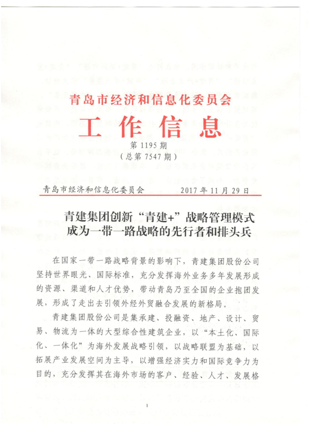 “青建+”模式獲第三屆青島市企業(yè)管理創(chuàng)新成果獎