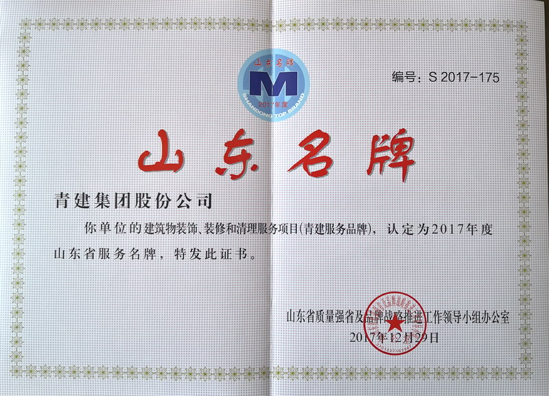 近年來,山東省認(rèn)真貫徹國務(wù)院《質(zhì)量發(fā)展綱要(2011-2020年)》的綱要精神,實(shí)施質(zhì)量強(qiáng)省戰(zhàn)略,積極組織開展了2017年度山東省服務(wù)名牌的認(rèn)定工作。經(jīng)各市推薦、資格審查、材料認(rèn)定、現(xiàn)場(暗訪)核查及書面征求部門意見和社會公示等工作程序,“青建”被認(rèn)定為“建筑物裝飾、裝修和清理服務(wù)”類別山東省服務(wù)名牌。