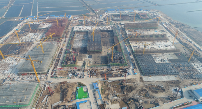 中國·紅島國際會議展覽中心項目總占地面積28.6萬平米,總建筑面積達(dá)到了48.8萬平米,相當(dāng)于67個標(biāo)準(zhǔn)足球場那么大,然而建設(shè)工期僅有同體量工程的一半不到,難度之大可想而知。